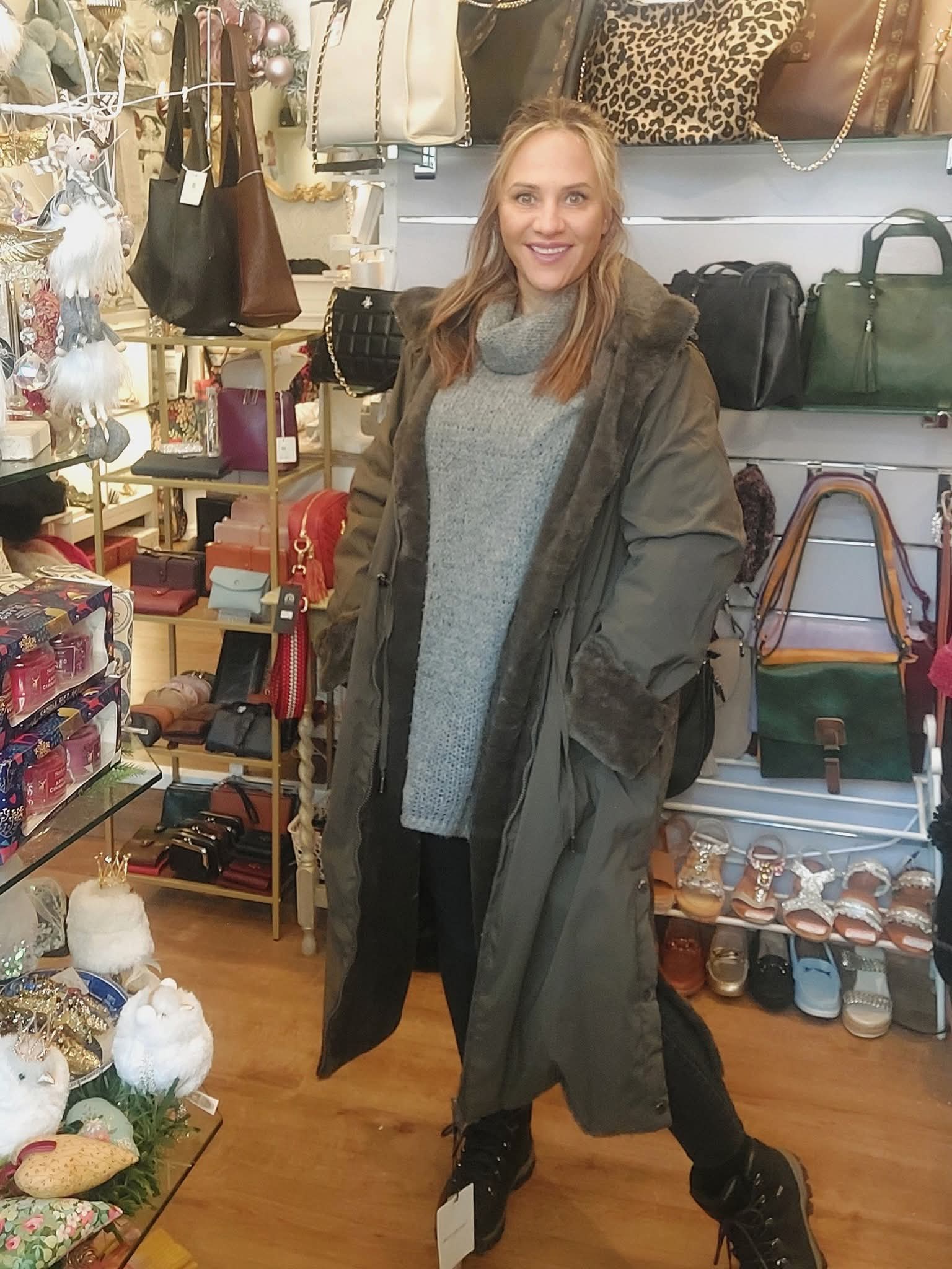 The Waterproof Reversible 2in1 Coat features a dual-function design, allowing wearers to choose between a faux fur exterior or a waterproof shell. Its longline cut provides additional warmth, while the detachable hood increases versatility. The leg buttons are specifically designed for improved comfort during driving, enhancing user experience.